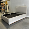 Drift off to sleep, sink into dreams, indulge in a bed that floats. The clean, linear frame stretches down to the floor. Go casual and calm in linen, wake things up with pattern — there's plenty of area to let your style speak.