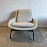Shapely curves, a gentle recline and “just-right" cushions invite the lost art of unwinding. A sculptural powder-coated steel base sets up the striking profile.