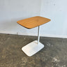 An organic shaped top marries with a round pedestal base to create a charming tension in forms. Looks dashing in full color or warmed up with wood.