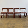 Set of four unique Swedish solid wood dining chairs by Lennart Bender, crafted by Skaraborgs Möbelindustri. Featuring a tufted grid-patterned seat, their simple yet striking design echoes Spanish influences with a generously padded seat. In good vintage condition.