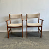 Crafted with care, this set of 2 arm dining chairs by D Scan boasts teakwood construction and quality upholstery that is both durable and stylish. These chairs are the perfect choice for adding a touch of vintage Danish charm to your dining space.