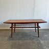 This Danish Modern Teak Coffee Table by Peter Hvidt & Orla Molgaard-Nielsen, designed in the 1960s, showcases exceptional Scandinavian craftsmanship and includes a second tier made of cane for convenient storage of books or magazines. Its elegant design makes it a perfect addition to any midcentury home or office. The original cane undershelf is also in excellent condition.