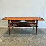 Danish Modern Teak Coffee Table Cane Shelf Rolled Edges 4 Storage Drawers