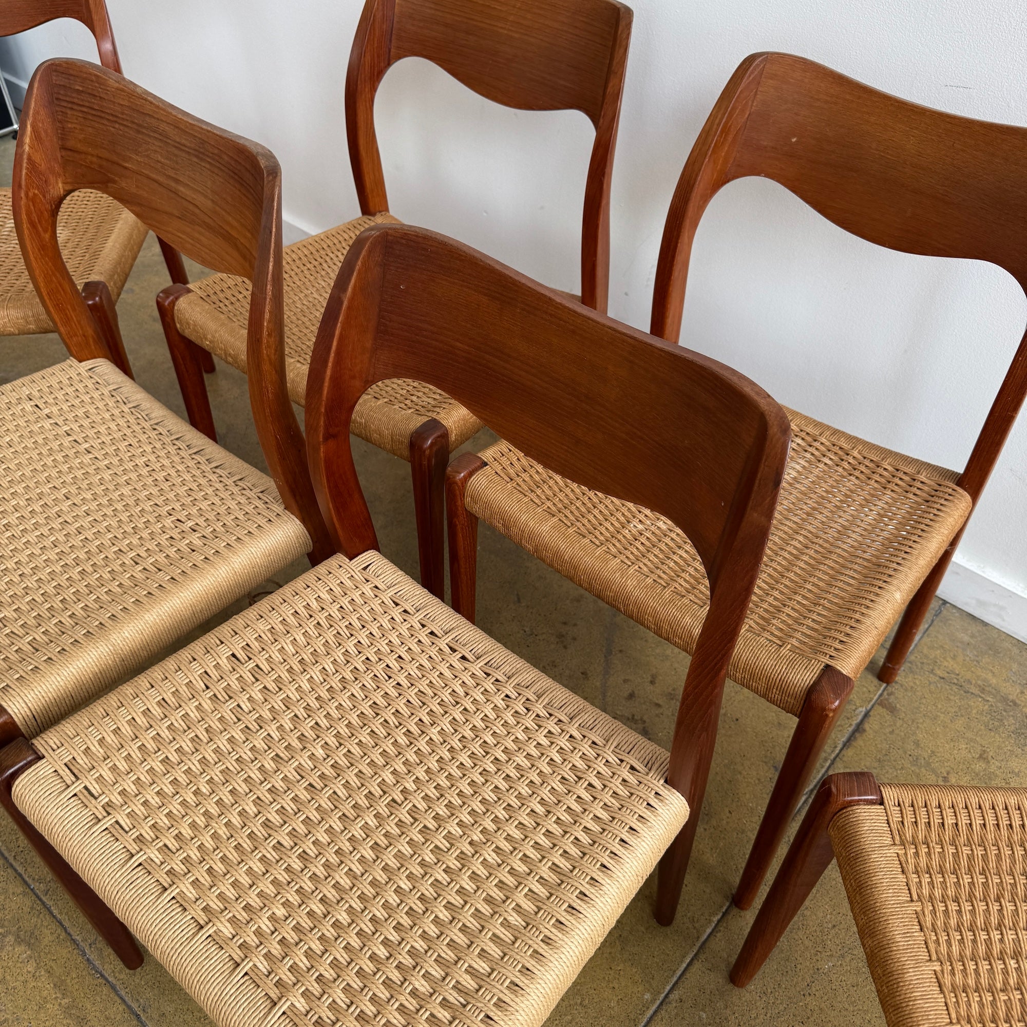 Danish Modern Niels Moller "Set of 6" Model 71 Teak dining chairs (Restoration Included)