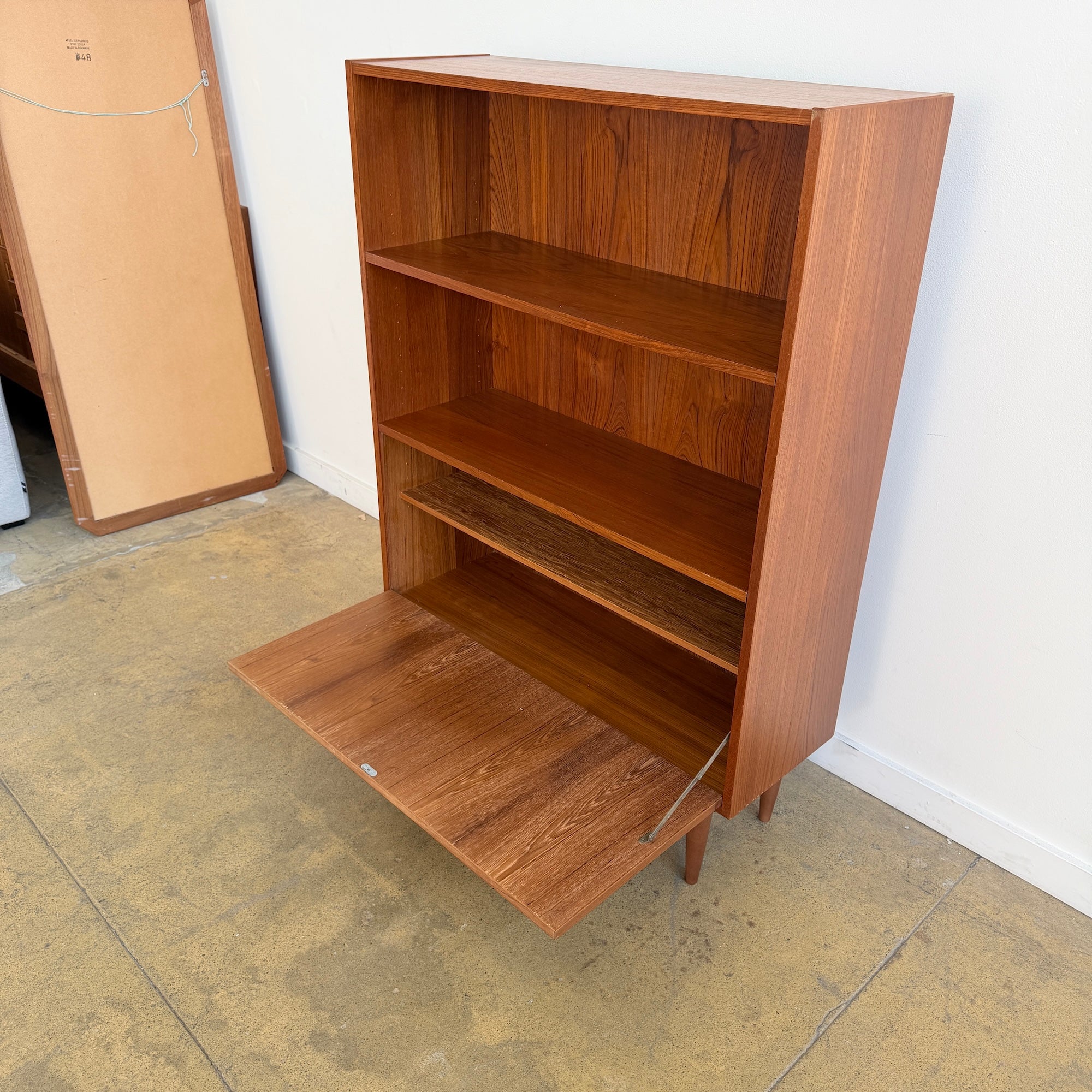 Danish Teak Bookcase With Drop-Down Door by Clausen , 1960s
