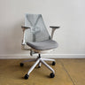 Sayl’s unframed 3D Intelligent back isn’t merely eye-catching – its elastomer strands stretch to provide tension-driven support where needed while enhancing your range of motion elsewhere. In good overall condition with some light scuffs here and there. This is fully adjustable chair that is very comparable to the popular Aeron chair but more elegant in home setting.