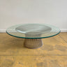 In excellent condition without any noticeable scratches on the glass or rusting on the metal base. This is an authentic Knoll table.