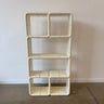 Very hard to find 1970s UMBO modular shelving unit designed by Kay Leroy Ruggles for Directional. Originally produced in white ABS plastic, this example has aged to a range of warm beige tones, which is typical and expected with age. The surface shows moderate fading on the shelves and sides, along with scattered scuffs, scratches, and signs of use. A true collector's piece with honest wear and rich vintage character.