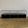 The USM HALLER Media Console was created in 1963 by Swiss architects Fritz Haller and Paul Schaerer. It features custom-made powder-coated steel panels and chrome tubes, providing long-lasting durability that can span generations.