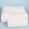 Designed by Annie Hiéronimus in the 1980s, the 'Plumy' two-seater sofa and matching ottoman are iconic examples of French postmodern design. Originally produced by Cinna, a sub-brand of Ligne Roset, these pieces are characterized by their plush, cloud-like forms and relaxed silhouettes.