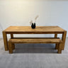 Modern block legs grace this very solid table and bench set. Add fun colorful chairs or another bench. The price includes the bench.