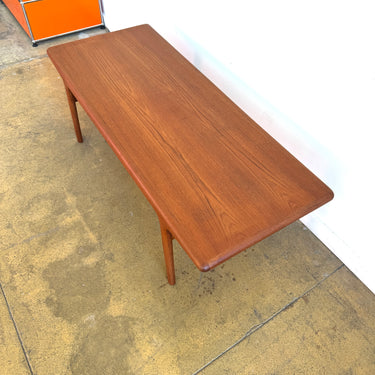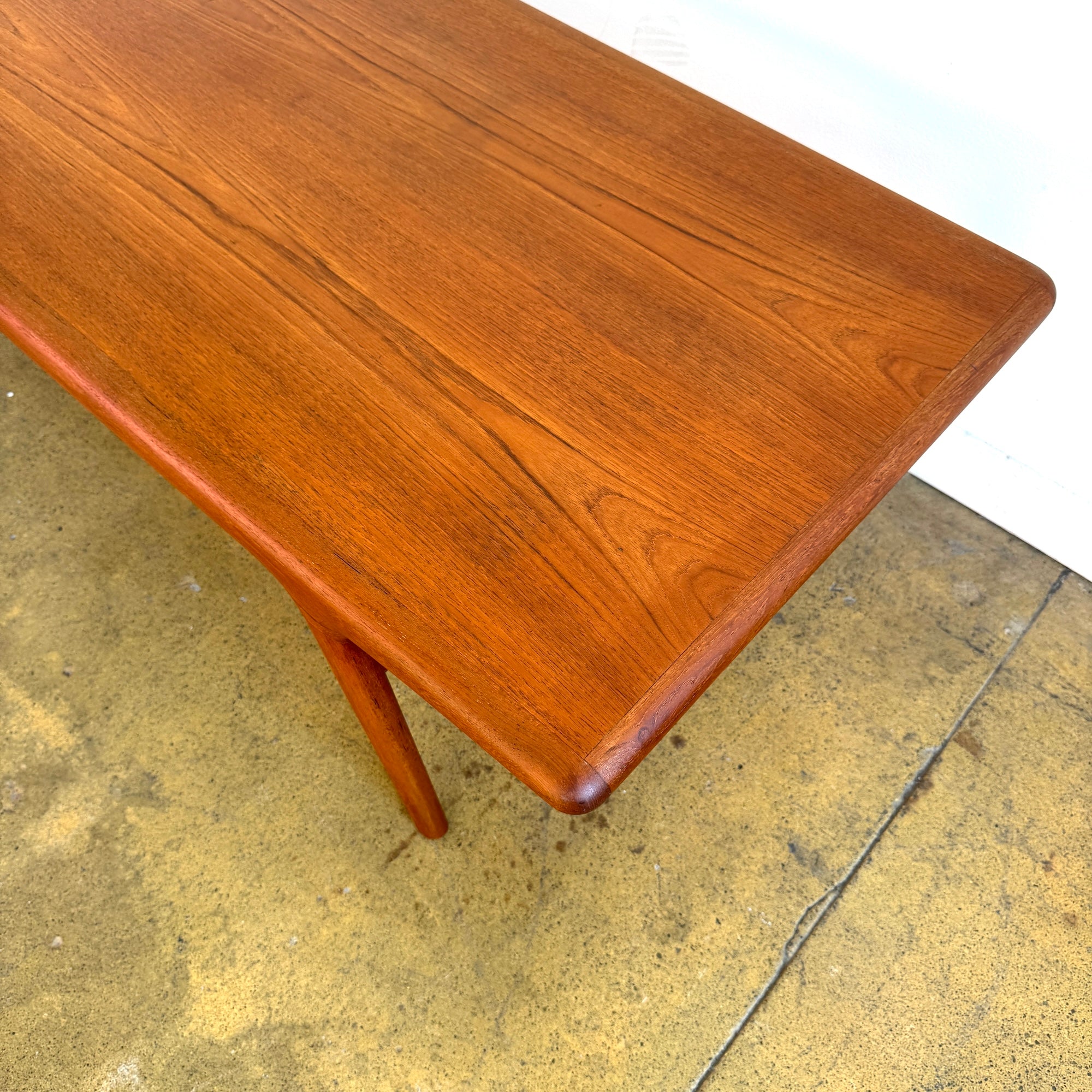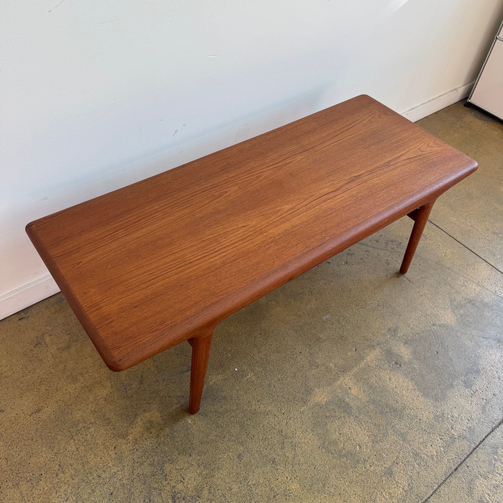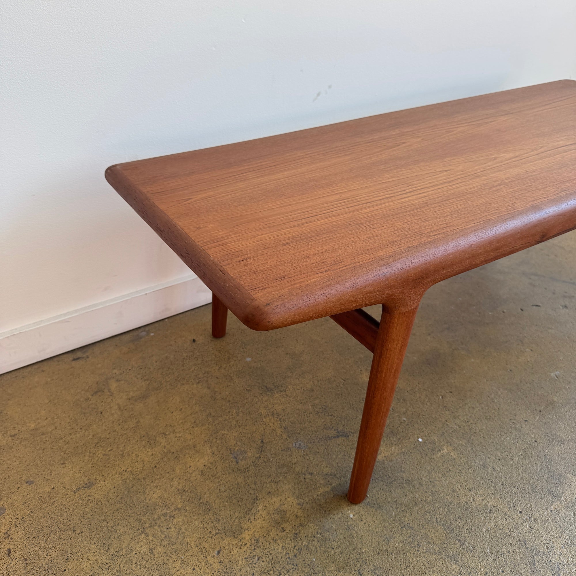 Elegant rectangular coffee table in solid teak, designed by Niels O. Møller and produced by J.L. Møllers Møbelfabrik in Højbjerg, Denmark. Model 40 is celebrated for its sculpted edges and softly tapered legs — hallmarks of Møller’s refined craftsmanship and organic design language.