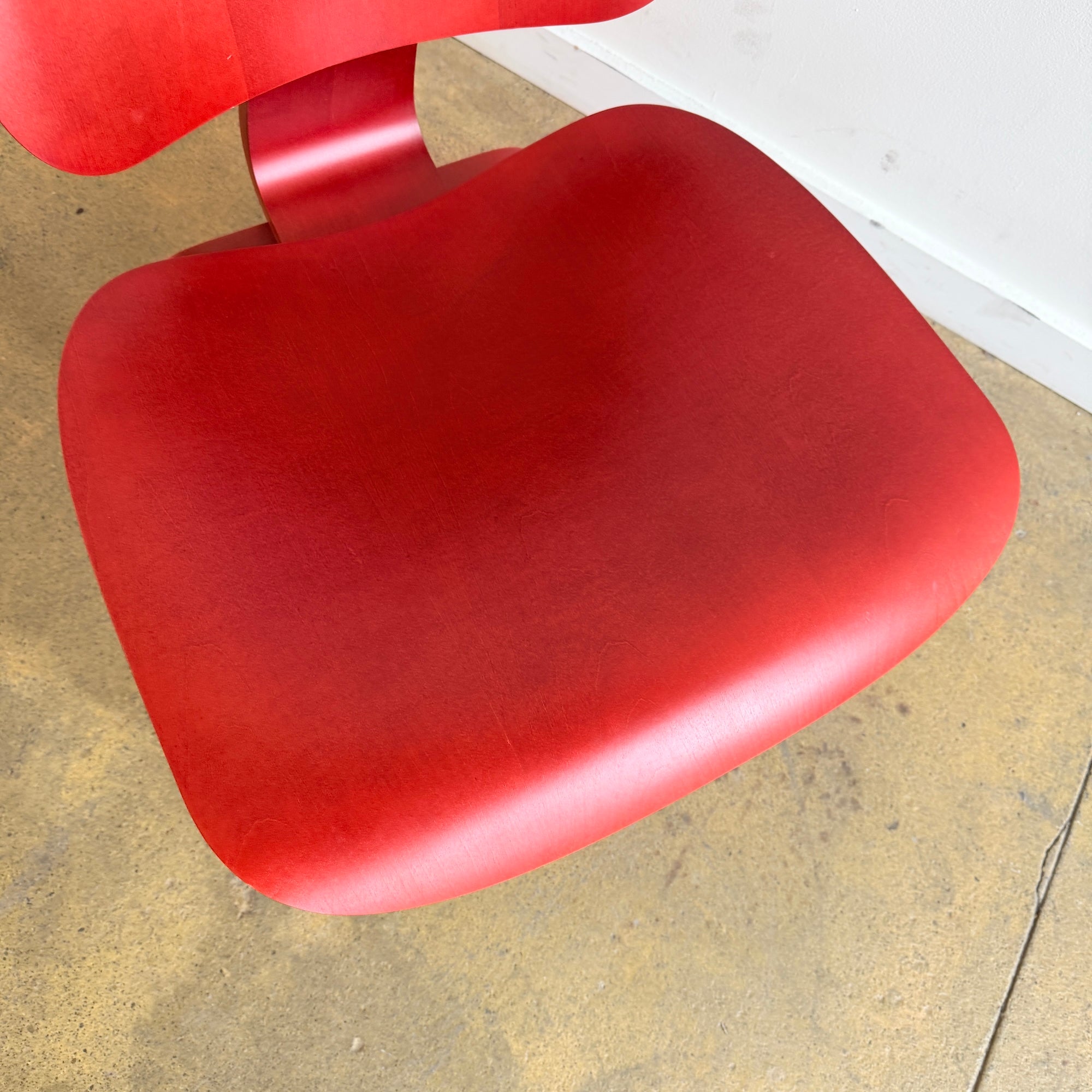 Hailed by Time as the Best Design of the 20th Century, the LCW — or Lounge Chair with wood base (1946) — began as an experiment in Charles and Ray Eameses’ apartment, where they were molding plywood in what they called the “Kazam! Machine.” The machine pressed thin sheets of wood veneer against a heated membrane that was inflated by a bicycle pump. From these humble beginnings came what would become one of the world’s most widely recognized and highly coveted chairs.