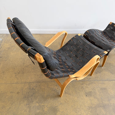Rare! Bruno Mathsson “Pernilla” Leather Webbing Armchair & Ottoman for Karl Mathsson 1973