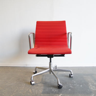 The iconic design of the Eames® Aluminum Group Management Chair by Herman Miller is a masterclass in mid-century refinement. With its emphasis on comfortable style, this chair cradles your back to create a firm sitting pocket, as the smooth aluminum sides support your arms in a modern style. Choose from a wide variety of color and material options.