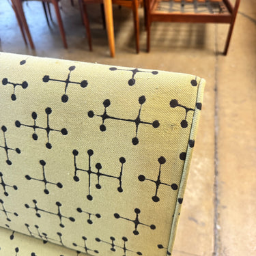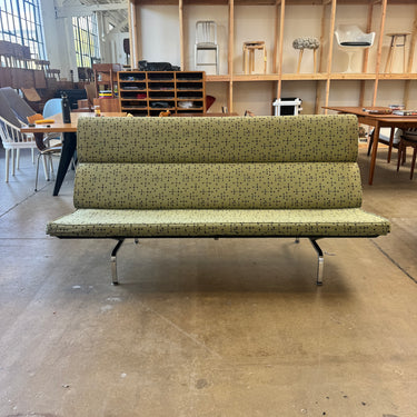 This is an authentic vintage Eames compact sofa made with Eames Maharam upholstery. Sofa is overall in good condition but there is some light scratches, small spots and poke here and there. Nothing major. Price reflects the condition.