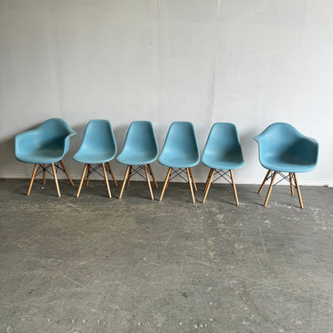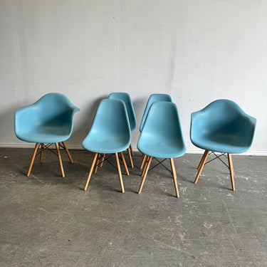 Note: This is an authentic set of 6 Herman Miller Eames dining chair. 4 in side chairs and two in arm.