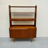 This Danish Modern Teak bookcase cabinet with secretary desk is in excellent vintage condition, with numerous book storage shelving options. It offers a wide range of storage solutions and features a built-in secretary desk.