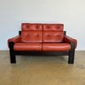 Vintage Swedish Leather High Back 2 Seat Sofa