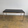 A sleek and versatile modern table featuring a chrome frame and legs, paired with a black linoleum top. Perfect as a dining table or desk, its clean design complements USM’s tubular aesthetic beautifully. In good condition. Two may be available—price is per table.