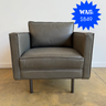 Our Axel Armchair with clean lines in mind. It features your choice of leather on a simple industrial form, with flanged edges and modern metal legs. Though intended for your living room, its kiln-dried, Contract Grade frame is durable enough even commercial settings. Two chairs are available. The price is per chair.