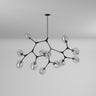 From Designer Jo Alcorn, the "Organic" collection features a black frame with vintage brass accents. This collection features a clear circular dimple glass. The arms can be adjusted to any configuration desired. Comes with extra rods for height adjustment and a handstraight for sloped ceilings.