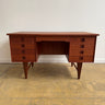 A beautiful Danish teakwood desk in good vintage condition. Featuring 8 drawers plus an additional drawer in the center, along with ample storage at the back. This desk has likely been restored recently, preserving its charm and functionality.
