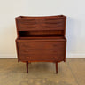 Danish Modern cabinet featuring six smaller top drawers, a secretary-style pullout desk, and four larger bottom drawers. Recently refinished and in excellent vintage condition.
