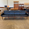 The Moduline sofa, designed by Ole Gjerløv-Knudsen & Torben Lind in 1962 for France & Son, embodies minimalist elegance. Featuring a sleek black leather seat with button-tufted cushions, it rests on a slim, black lacquered oak or solid rosewood frame. Clean lines, slender legs, and leather-wrapped armrests complete its timeless, modern aesthetic.