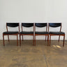 Set of four Mid-Century Modern dining chairs by P.E. Jørgensen for Farso Stolefabrik, Denmark, circa 1960s. These beautifully crafted chairs showcase sculptural teak frames accented with elegant birch details and signature floating seats. Newly reupholstered in stylish black vinyl, they seamlessly blend timeless design with everyday functionality, perfect for elevating any Danish modern dining room or mid-century-inspired space.