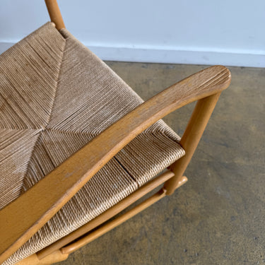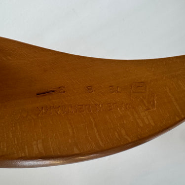 This handmade rocking chair by Hans Wegner, recently imported from Denmark, is marked with a 1978 label and remains in good overall condition. It shows minor signs of wear, including small spots and scuffs, consistent with its age.