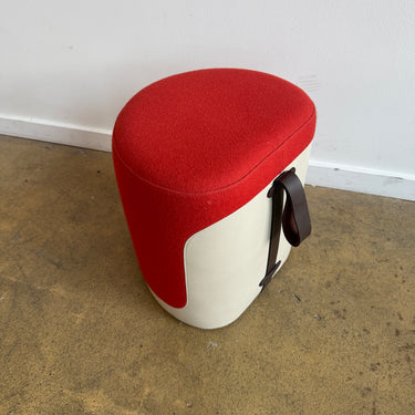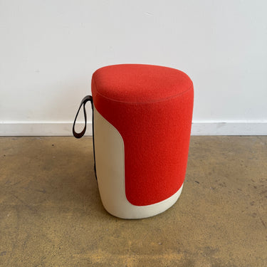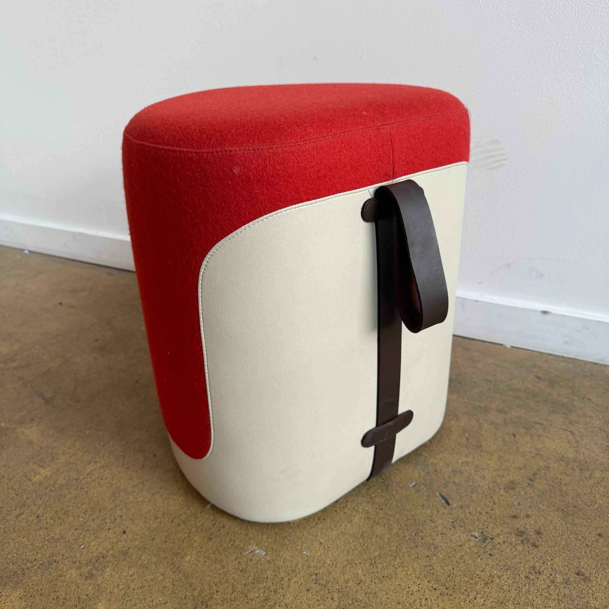 Tour is a flexible and engaging ottoman that accommodates and encourages mobility. Inspired by a duffle bag, the Tour ottoman features a leather strap that allows users to easily carry it from place to place. Designed for lounge and social spaces, Tour offers freedom to move. The base consists of a non-markable and exceptionally durable material that allows sliding with reduced friction. The Tour ottoman features a black or brown leather pull handle.