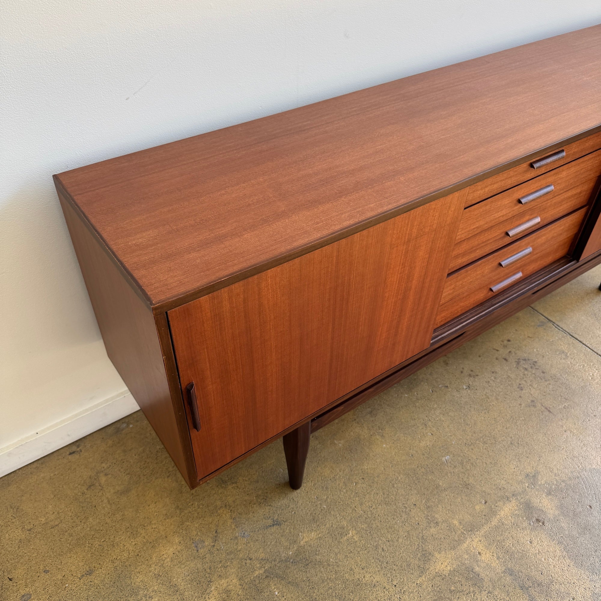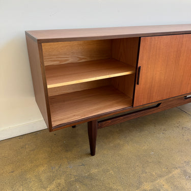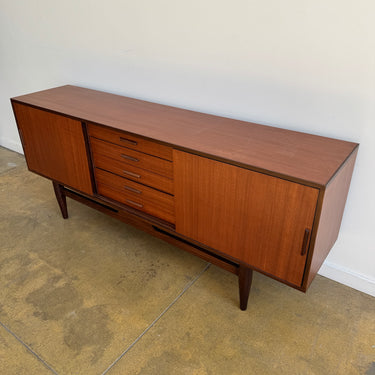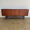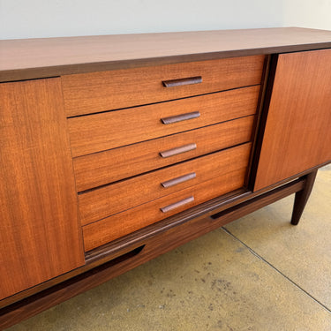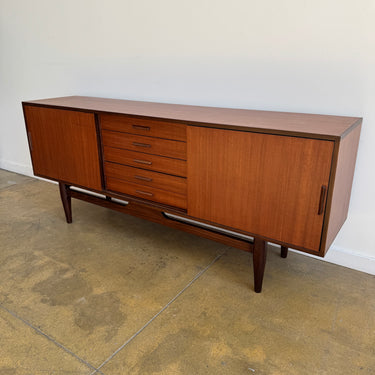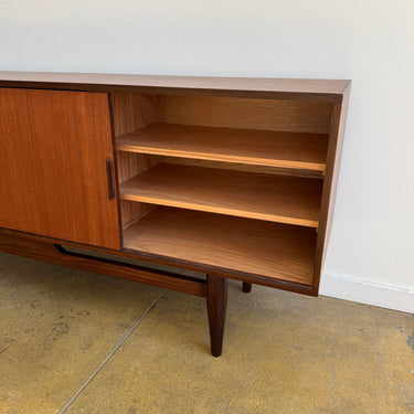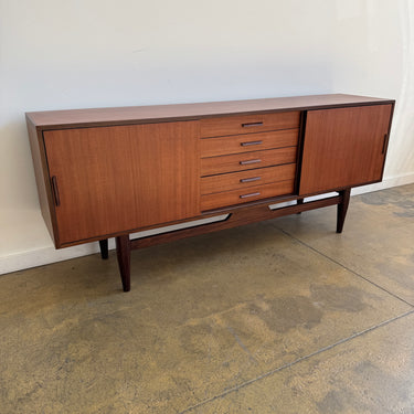 Danish Modern Teak Credenza with Sliding Doors and Five Drawers