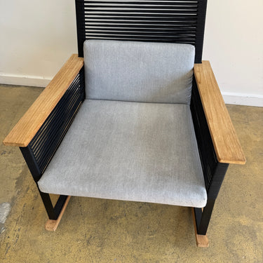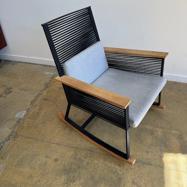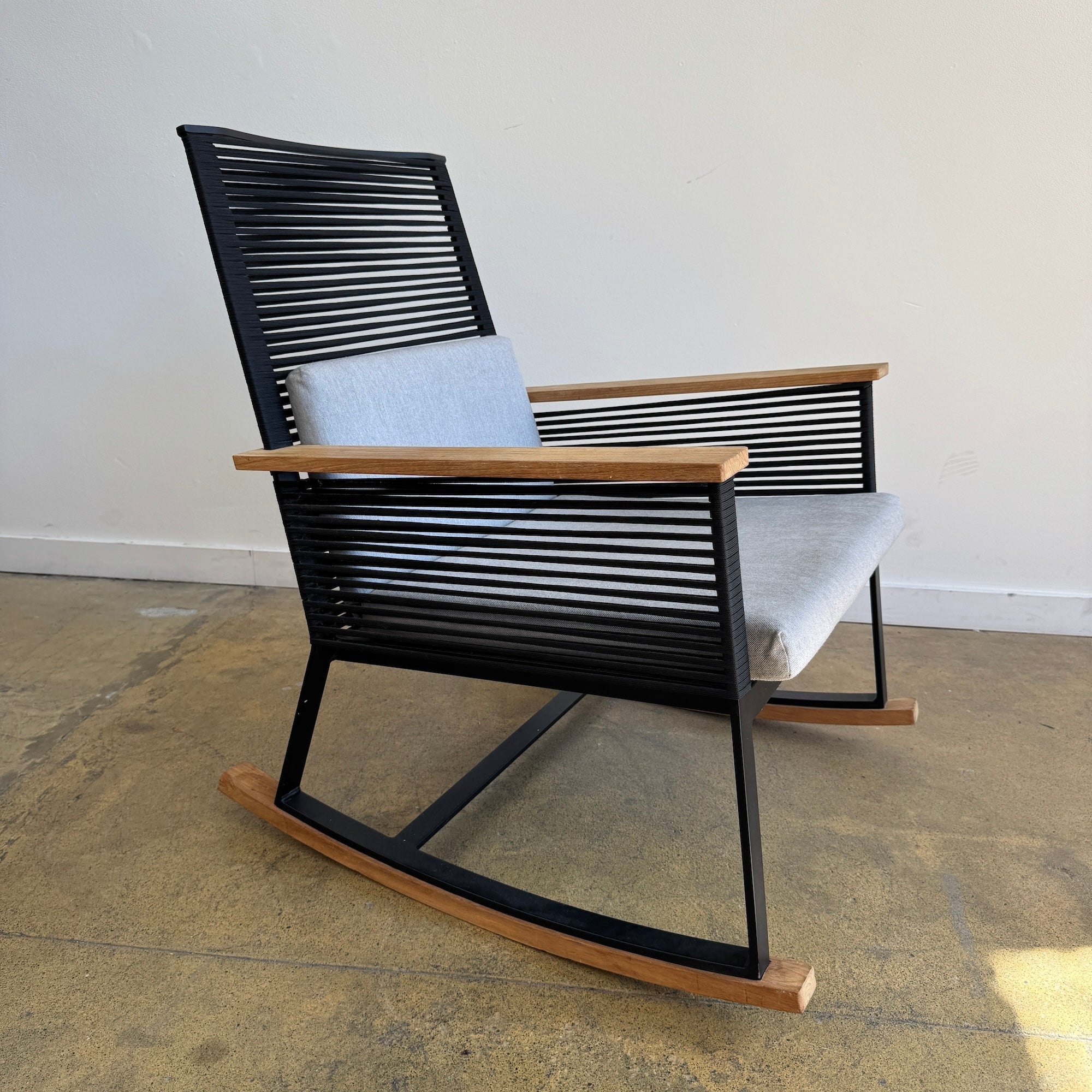 Rocking chair of the the Landscape collection. A collection characterized by modern architectural elements and shapes that highlight nature in outdoor environments. A complete collection made up of fully configurable sunbeds and pergolas, with customized aluminum furniture that adapt perfectly to any environment. Landscape is modern and elegant. Up to 8 chairs available.