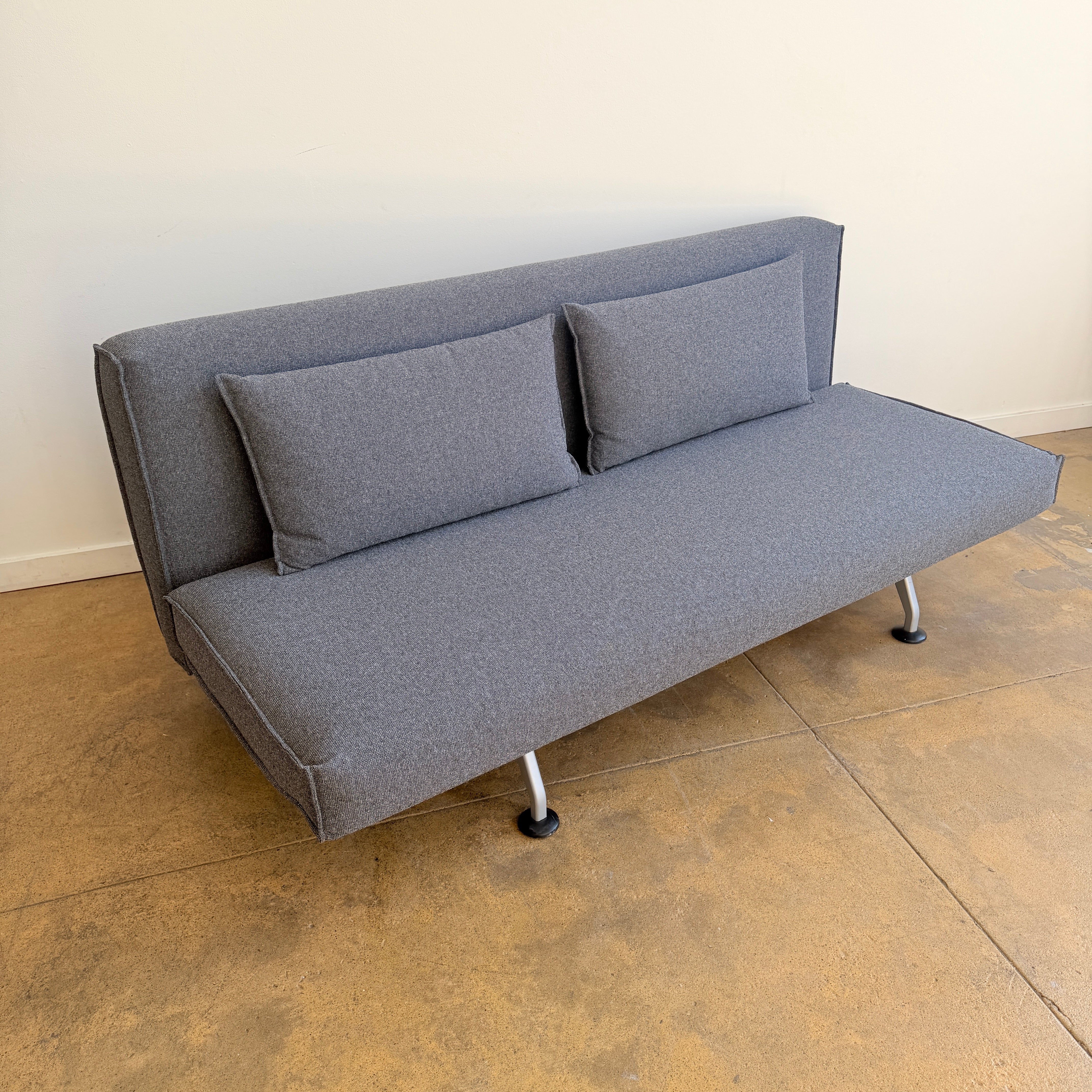 Sliding is designed by designer Pietro Arosio for Tacchini. Sofa bed for two people. reclining backrest. The base is made of aluminum painted with epoxy powder. This allows a structure without welding and rust resistant. Excellent like new condition.