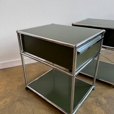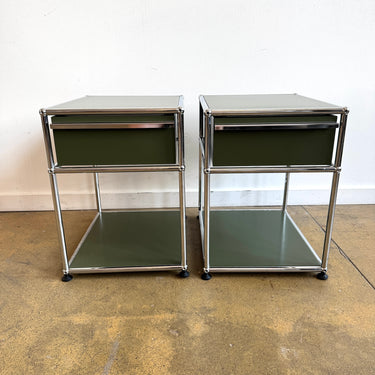 This USM Haller nightstand set is ideal for contemporary beds. The panels are in excellent condition. This set includes both nightstands.