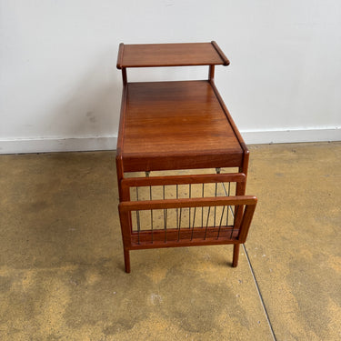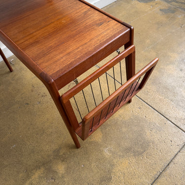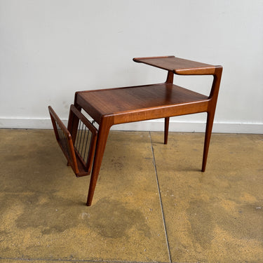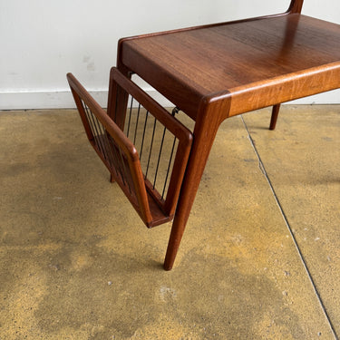 A striking and rare teak side table by Kurt Østervig, featuring clean modern lines and a detachable magazine rack. Light scuffs here and there, but overall in great condition.