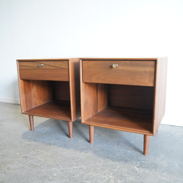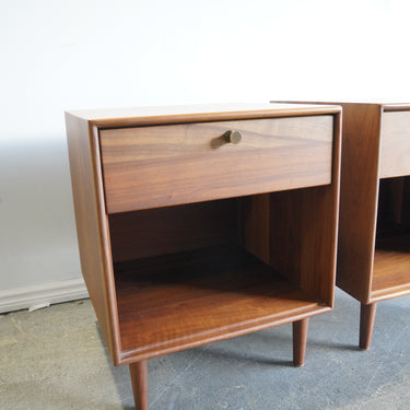 Note: In overall good condition pair of nightstands by Copeland furniture from Design within reach. Solid wood and simple design. Price is for both.