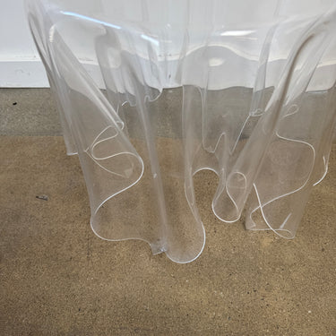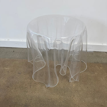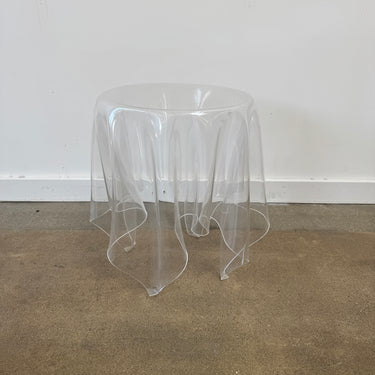 Illusion embodies a timeless elegance, simplicity, and practicality. "As I was walking by a café in Copenhagen, I noticed round tables draped with white tablecloths. Each square cloth nearly grazed the ground. Captivated, I took several photos. Later, I visited a plastic workshop, presented the image, and inquired about the feasibility of crafting such an item in plastic. Initially, the response was negative. Nonetheless, I persisted, and after several months, prototypes were produced. The outcome was Illusion, a remarkable instance of Symbolic Functionalism that has garnered overwhelmingly positive acclaim from the media and consumers alike." - John Brauer. Each Illusion table is handcrafted and distinctly unique.