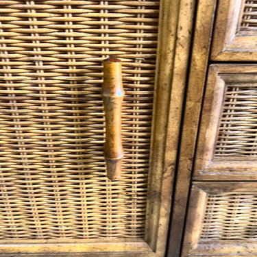Hollywood Regency Nightstands wit Bamboo & Wicker by American of Martinsville