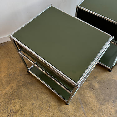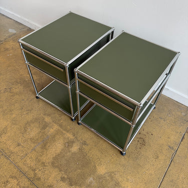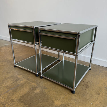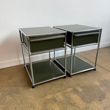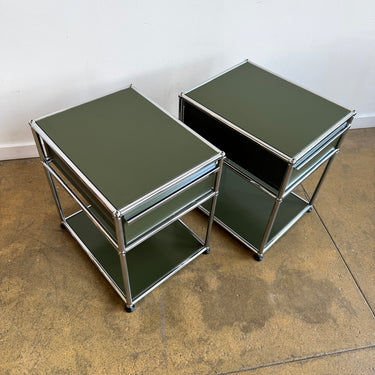 This USM Haller nightstand set is ideal for contemporary beds. The panels are in excellent condition. This set includes both nightstands.