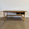Generous workspace with open legroom and minimal profile. The drawer is lockable, though the original key is missing—replacement may be available through a lockshop. Overall in good condition with minor wear consistent with age.