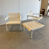 Note: In good condition set of two outdoor lounge chair an single ottoman from Knoll designed by Richard Shultz. Some light scuffs and stains expected from outdoor setting but no major stains or tear. One of the chair has a little fold on the top. Price reflects the condition.