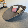 The Fibonacci Vantana Double Chaise is constructed with a powder coated steel frame and JANUSfiber weaving. It is for interior or exterior use. This unique chaise lounge is wide enough for two, with a width of 59 inches and a length of 71.75 inches. The Fibonacci Collection offers a range of dining and lounge furniture designed by the distinguished New York-based firm Gabellini Sheppard Associates.