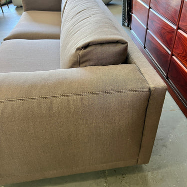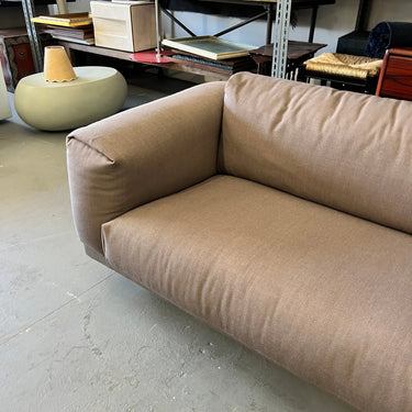 This sofa is completely new, without any stains, tears, or imperfections, and remains in flawless condition. It is upholstered in high-quality Kvadrat Steelcut Trio fabric, featuring a neutral tone with a subtle hint of lavender.