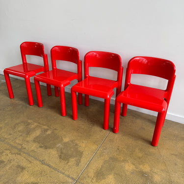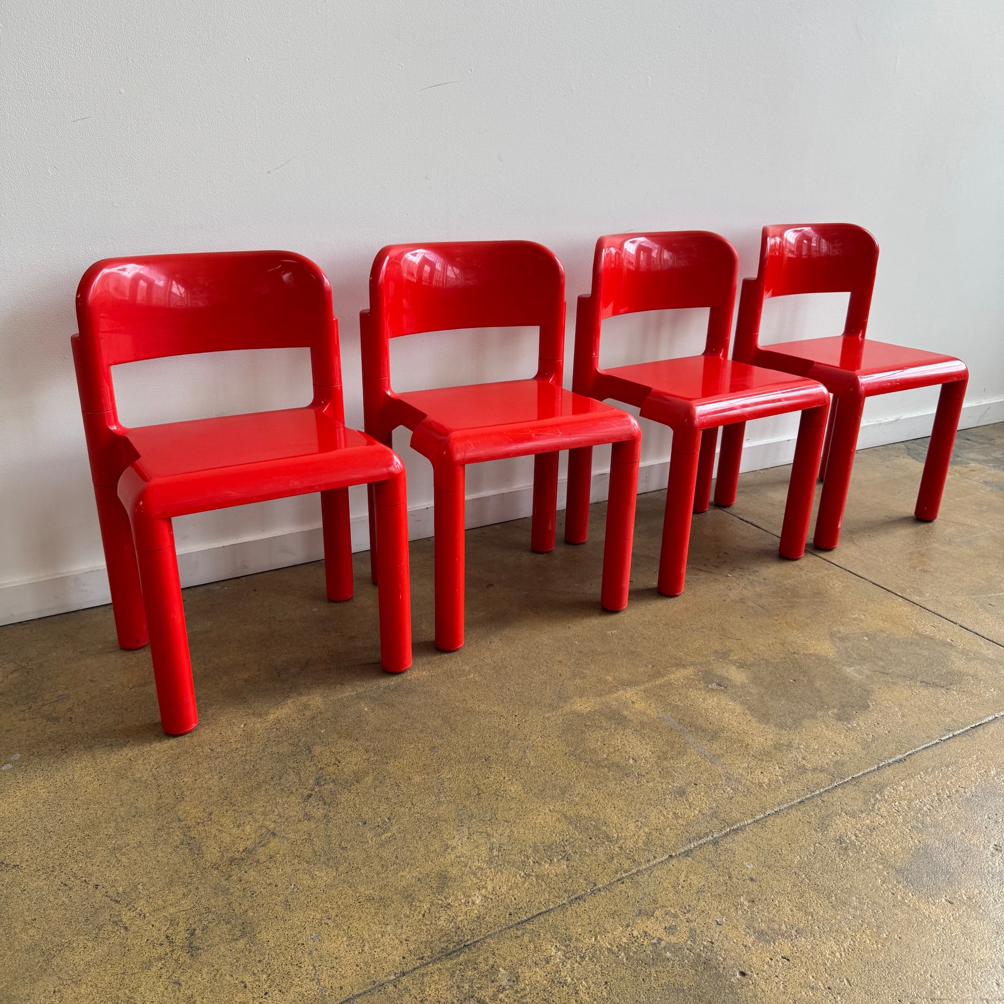 Rare! Eero Aarnio Set of 4 Red Plastic Chairs by UPO, 1960s