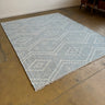 The geometric gem. A rhythmic diamond pattern is hushed in mellow hues. Sensibly soft and woven of New Zealand wool, this kilim-style rug has the floor.