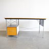 The innovative Eames Desk (1952) comes in two color schemes: “multi” with birch fronts and brightly colored (red, white, blue, and yellow) side and back panels or “natural” with birch fronts and neutral (black and white) side and back panels. It includes a file drawer on the right and nylon glides that are easy on floors. This original is an authentic, fully licensed product of Herman Miller, Inc. Eames is a licensed trademark of Herman Miller.