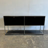 This USM Haller console is in good condition with minor scuffs from regular use. Originally, it did not come with the two bottom panels, but we have added them to the back for additional storage space. The panels now match the grey color of the back. Please see the last photo for reference.