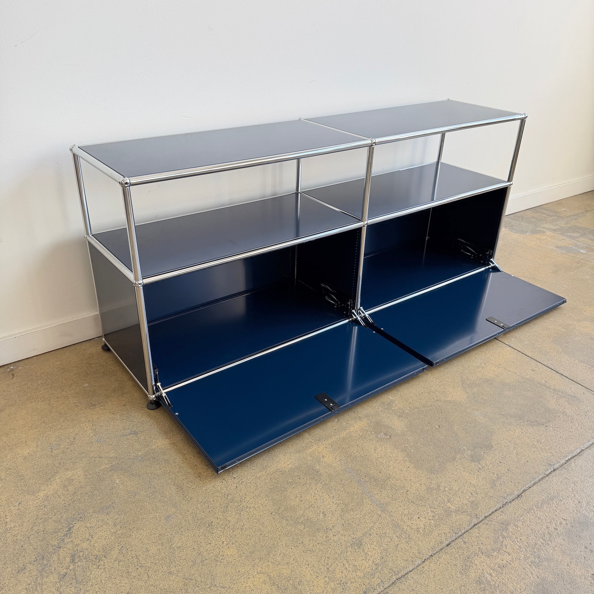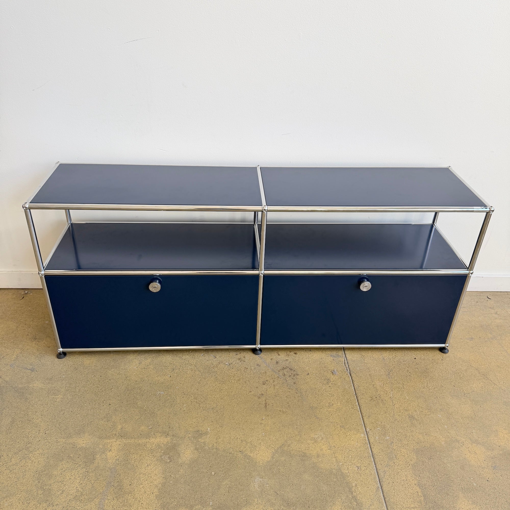This USM Haller console is in brand condition. The two upper unit is left open with two drop down closed door. Equipped with latest upgrade of soft opening and closing.